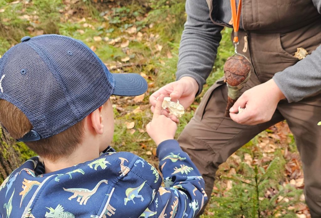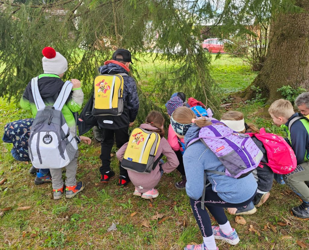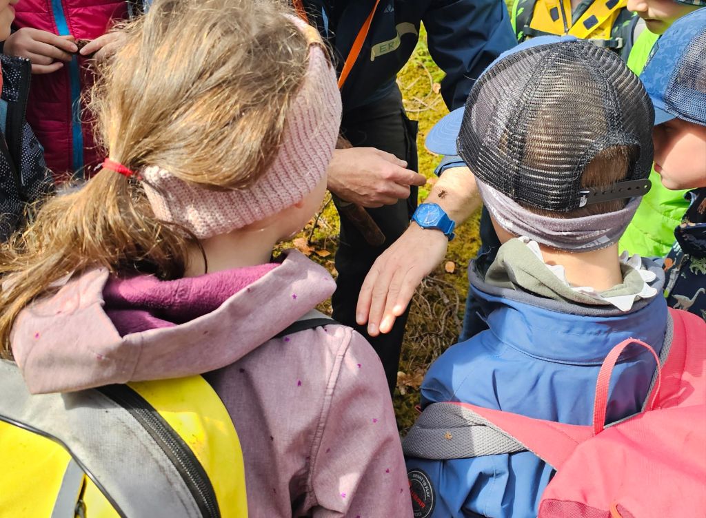 Nach der Jause ging es zum Tierspuren Parcours. Tierspuren wurden entdeckt und dann erklärt, für jene die sie nicht gleich erkannten. Die gefundenen Tiere haben wir dann beim Verstecken Spiel im Wald pirschend gesucht. Ein Teil der Kinder durfte den Förster mit Fernglas spielen, die restlichen Kinder haben sich versteckt.