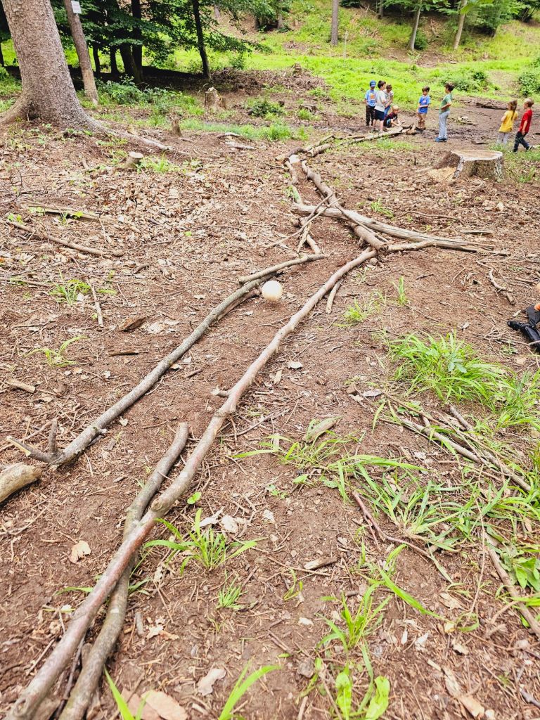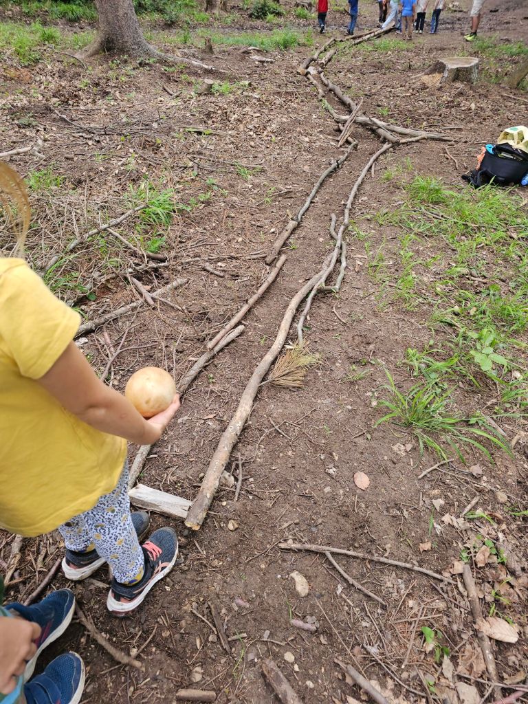 Das Highlight für die Großen im Wald war das Kugelbahn bauen! Da waren sie fast nicht mehr weg zu bekommen. Erst als das Wort Spielplatz fiel, fingen alle zu Laufen an.