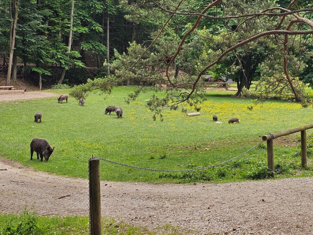 Dann kamen wir über die Haustiere gleich zu den Wildschweinen, die immer alle zum Staunen bringen.