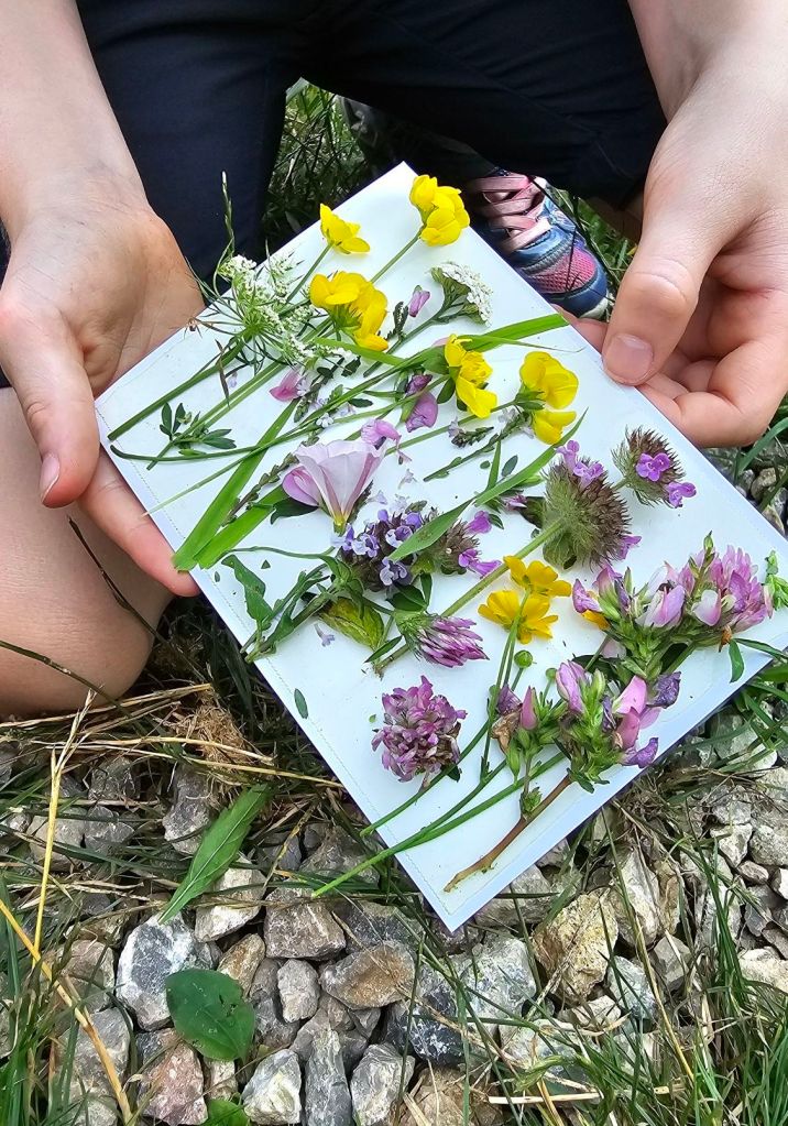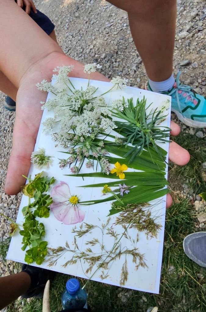 Vorbei am Dammwildgehege, wo wir auch wirklich das Dammwild bewundern konnten, gingen wir zur Blumenwiese und jeder bastelte eine Postkarte zum Andenken.