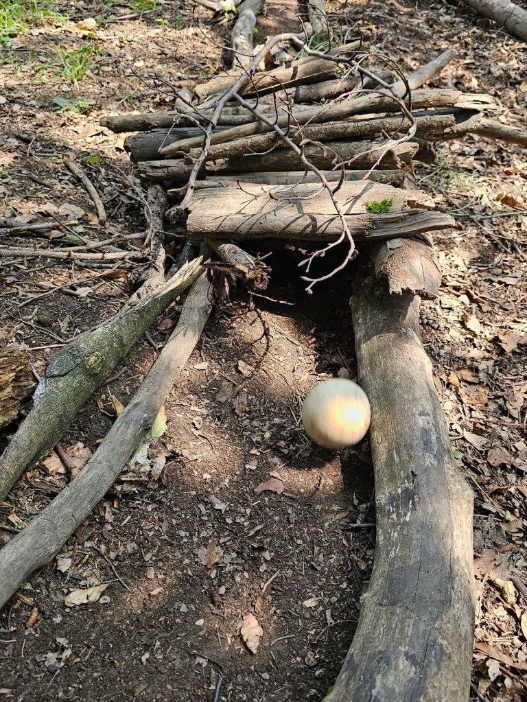 Die Kreativität der Baumeister war als nächstes gefragt, als wir gemeinsam eine Kugelbahn mit Kurven, Schanze und Tunnel bauten. Diese wurde dann lange ausprobiert, ausgebessert und erprobt.