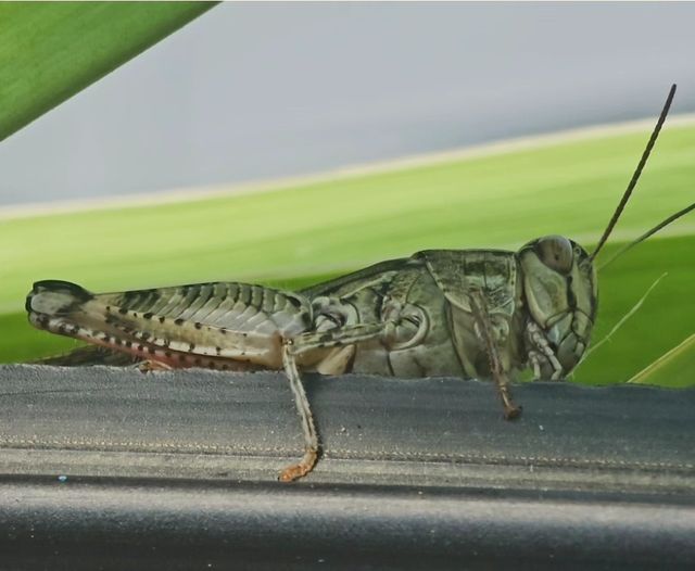 Beim Sonnenbaden letztens ruhte vor meinem Kopfteil dieser hübsche Genosse auf der Solaranlage. Für Insekten habe ich mich eigentlich nie so begeistern können, aber schaut doch mal aufs Detail. Wie ein filigran zusammengesetzter Mosaikboden ist dieser Körper gestaltet.